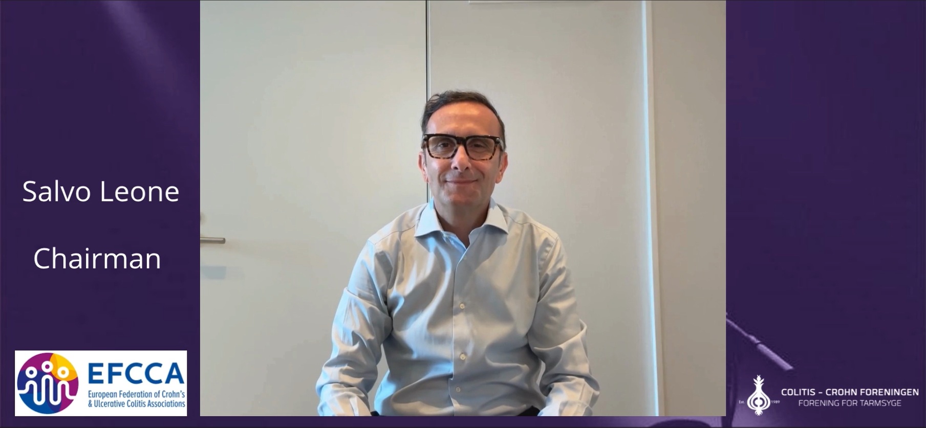 I den forbindelse har Salvo Leone, formand for EFCCA sendt en video hilsen, til alle tarmsyge i Danmark – og læger, frivillige og andre, der arbejder for bedre behandling, viden og livskvalitet for tarmsyge.