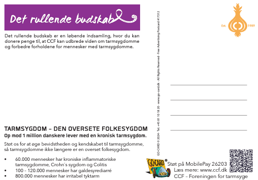 I 2023 udfærdigede CCF – foreningen for tarmsyge en pamflet, og kørte en kampagne på de sociale medier i tarmugen, hvor der var fokus på de fem største tarmsygdomme.
