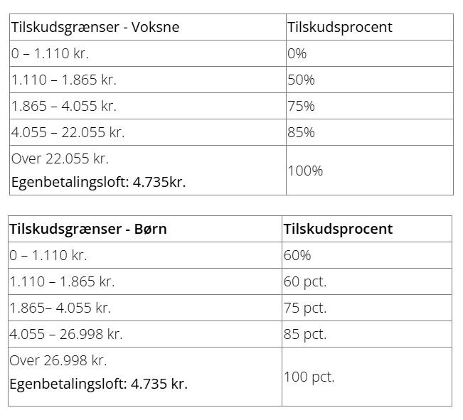 For børn og unge under 18 år skal medicinudgifterne overstige 26.998 kr. om året for at være berettiget til tilskuddet.