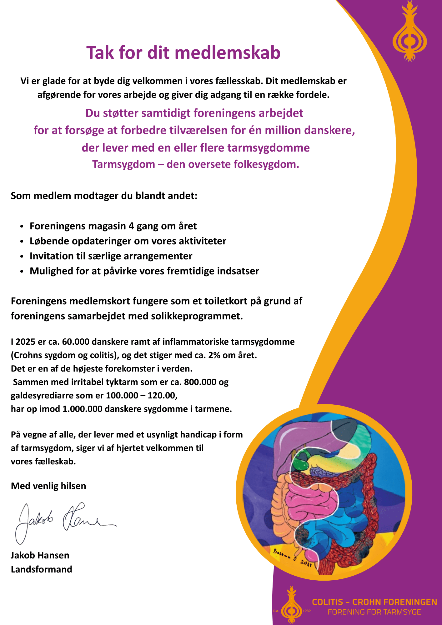 Tak fordi du har meldt dig ind i foreningen for tarmsyge