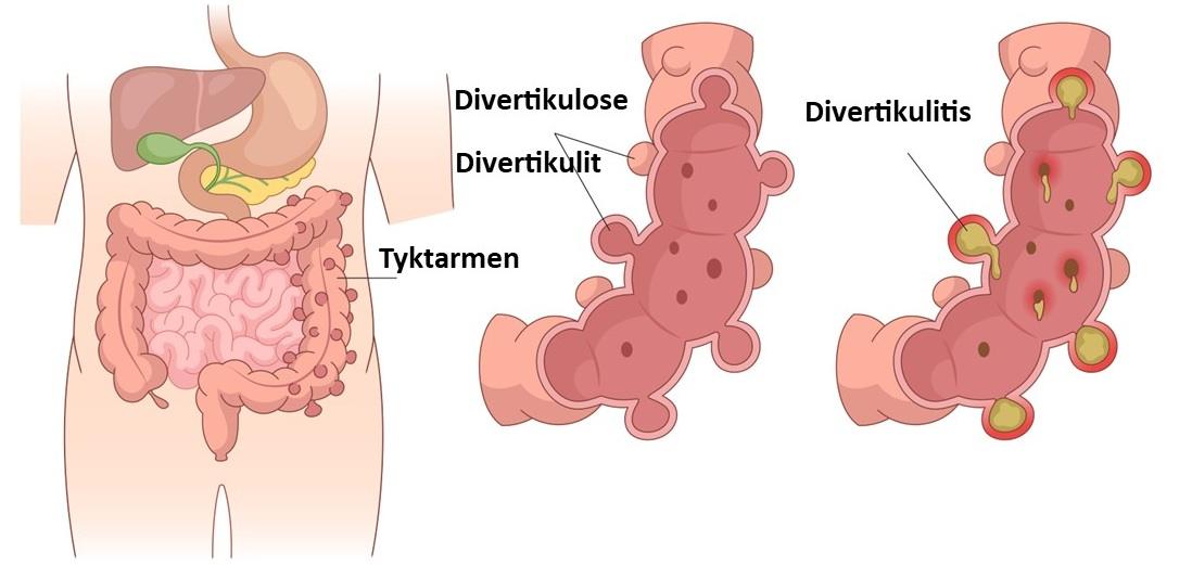 - Divertikulitis: Opstår, når en eller flere divertikler bliver betændte eller inficerede, hvilket kan føre til smerter, feber og komplikationer.